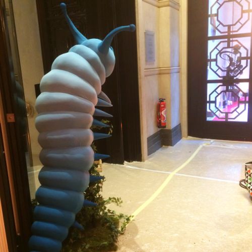 Création et fabrication d’une chenille fumante pour l’accueil, ainsi que création de deux femmes
