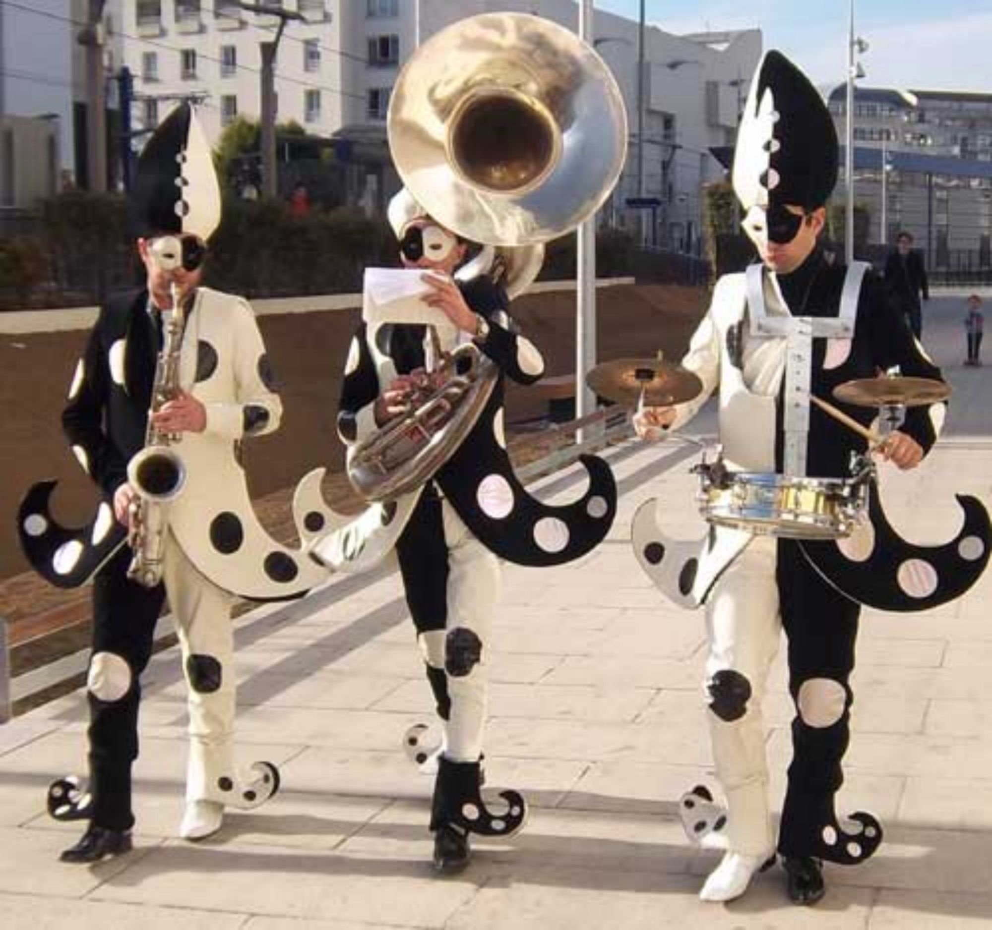 Création et réalisation de trois costumes illustrant la musique, symphonie en blanc et noir.