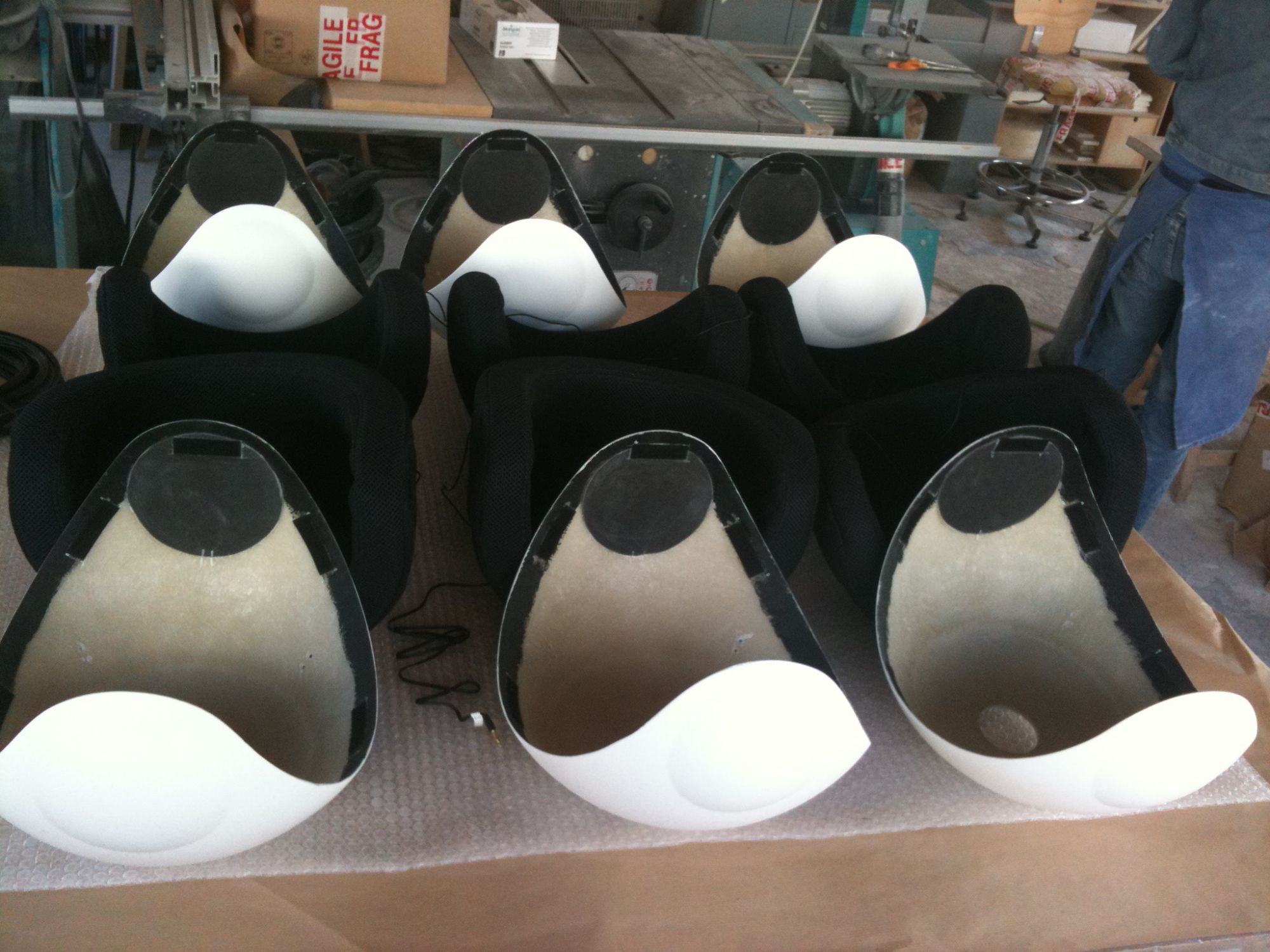 Création de six housses en mousse ép 4 cm, recouvertes de tissu,