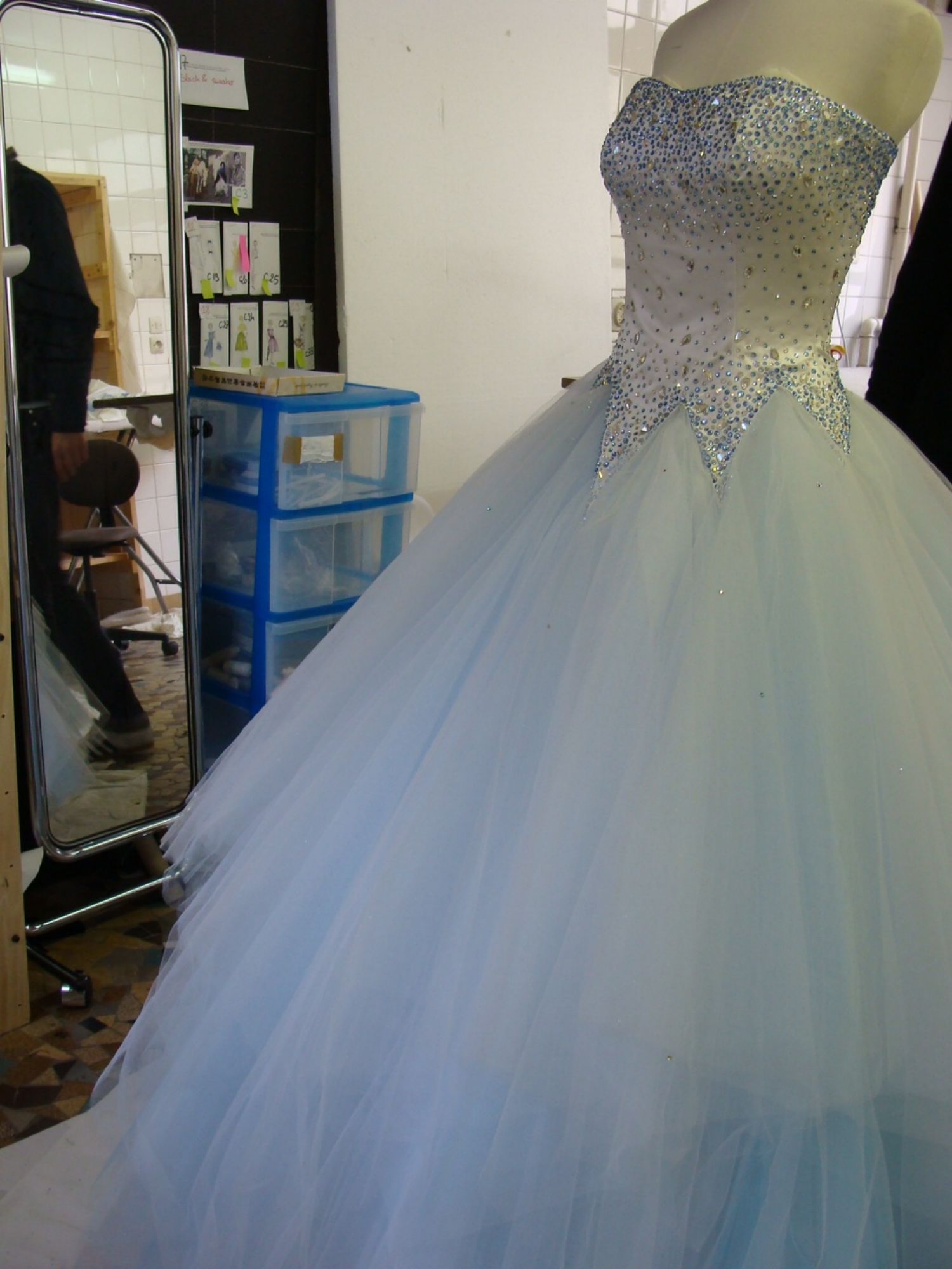 Réalisation de toiles pour le film et de la robe perlée dans son entier…