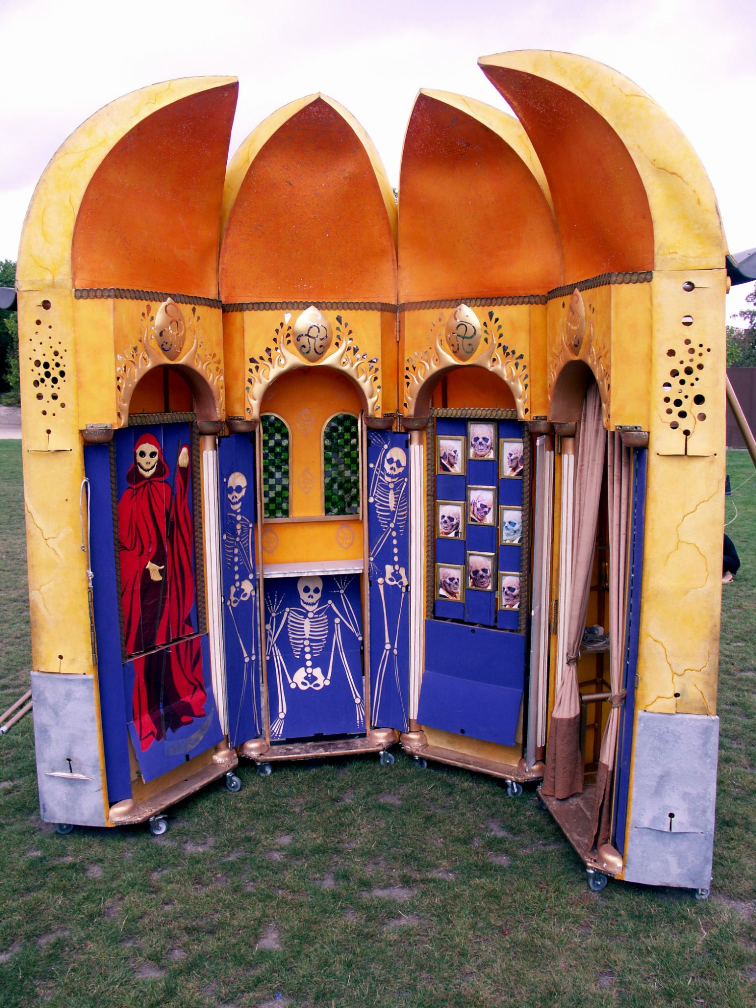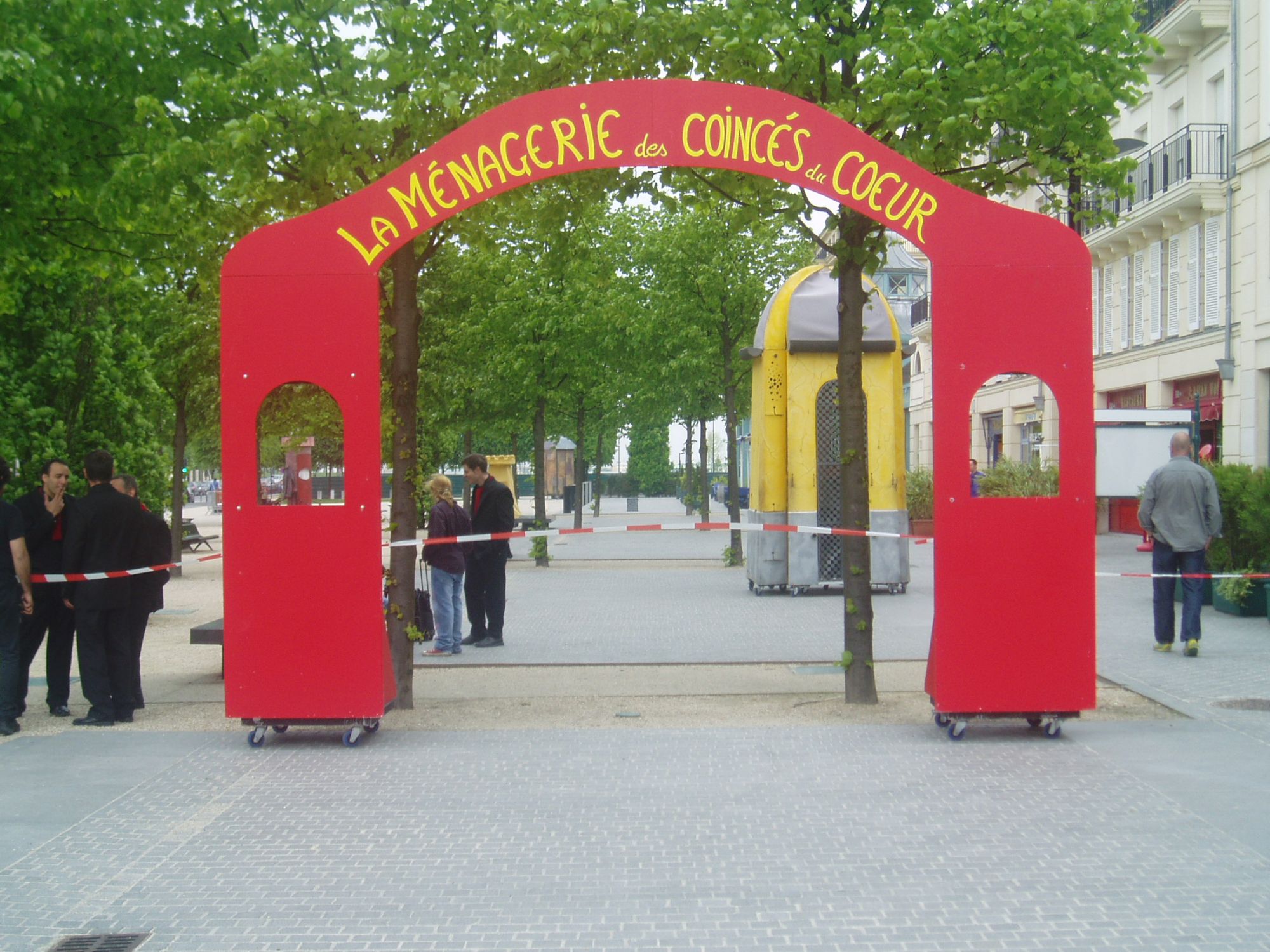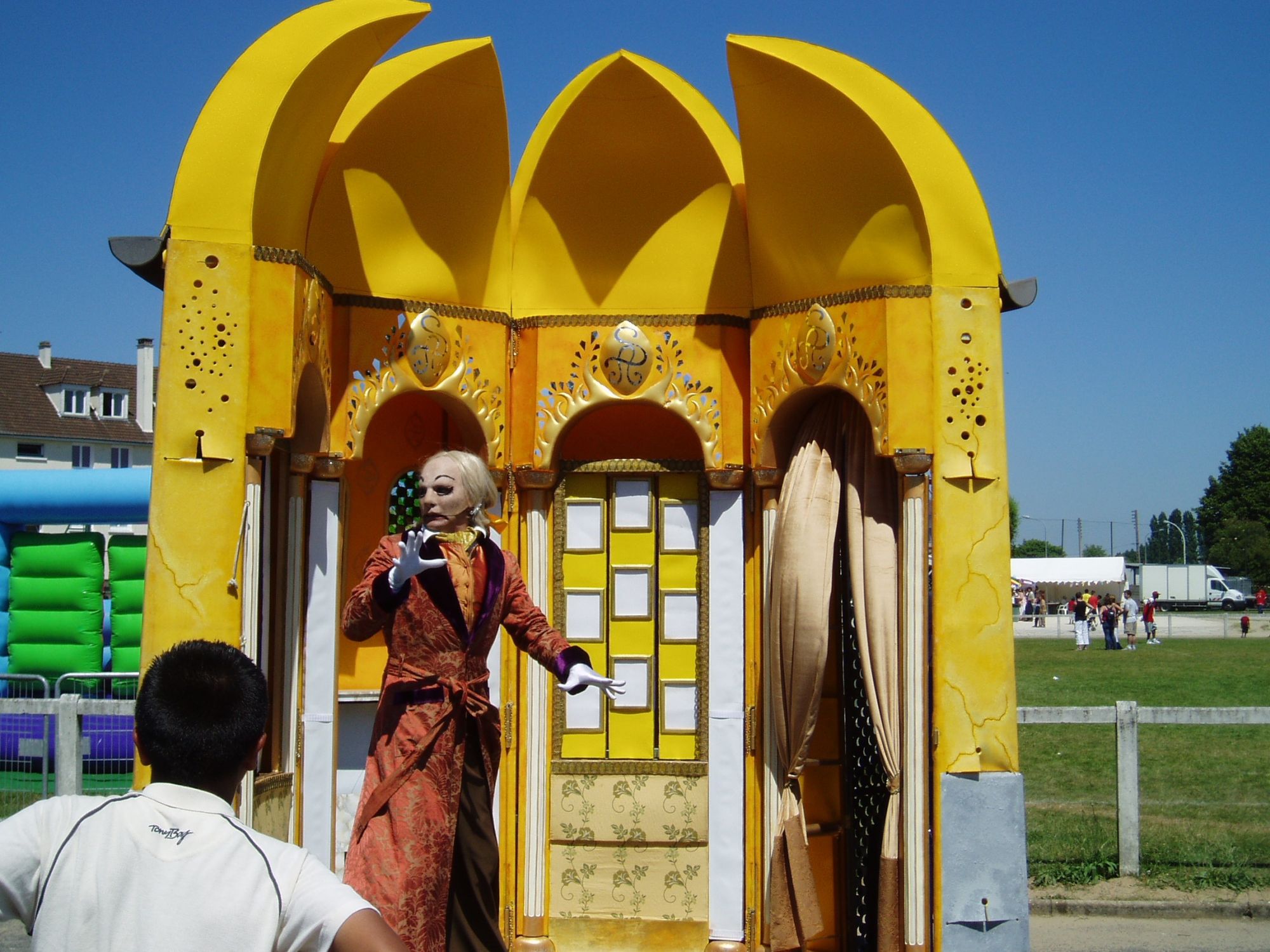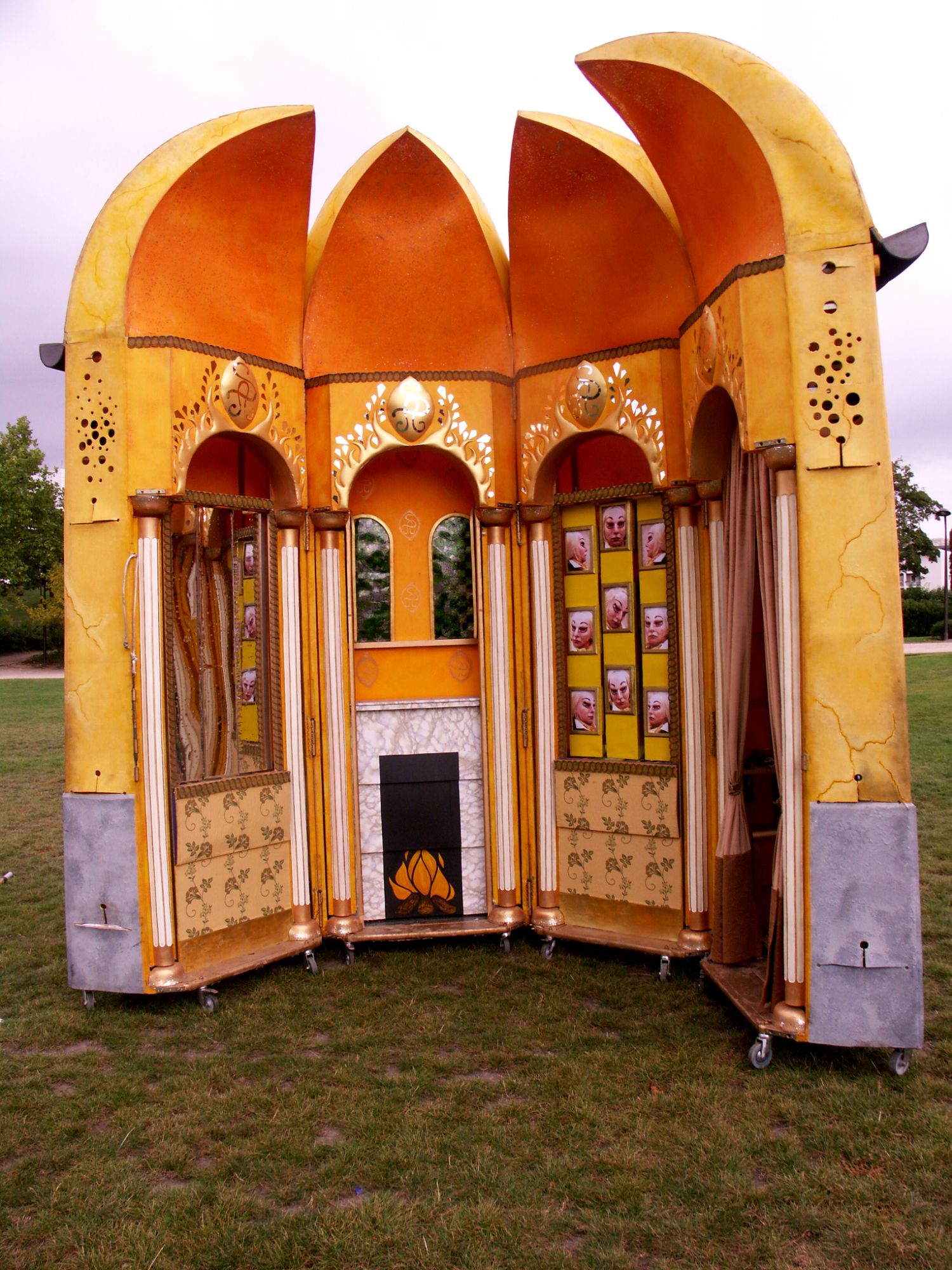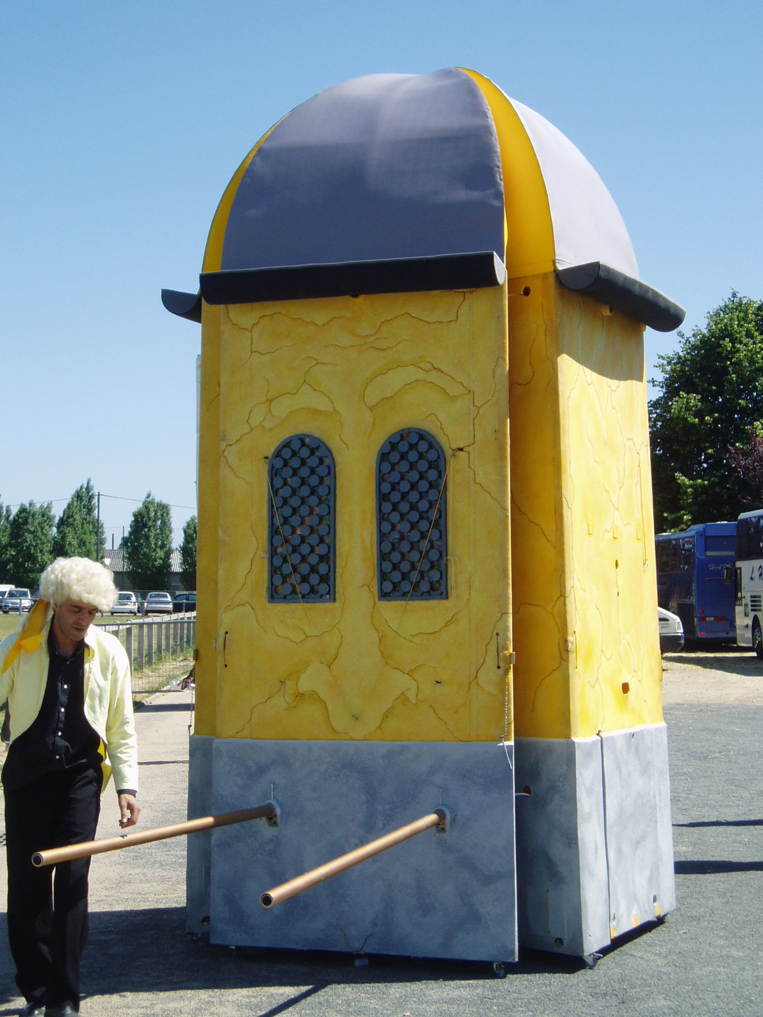 Scénographie de la maison jaune avec à la réalisation, Boualem Behnous, à la construction en alluminium de base,