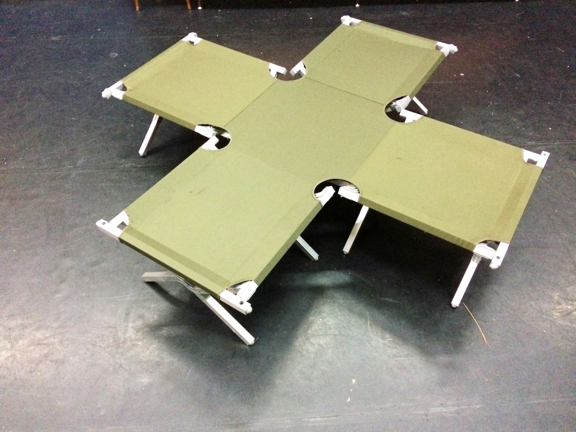 Fabrication de 4 housses de lit de camps en forme de croix avec la complicité de l’atelier Réplicart