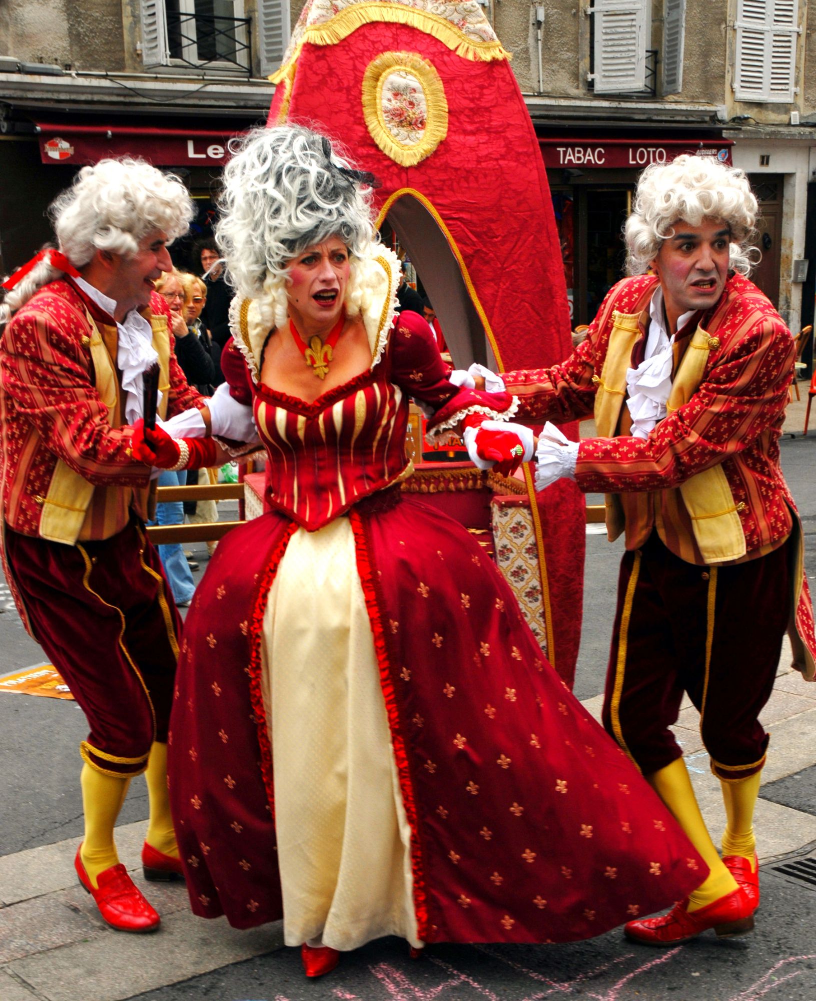 l’aide de Béatrice Boursier pour les laquais et de Stéphanie sur l’intérieur de la chaise à porteur…