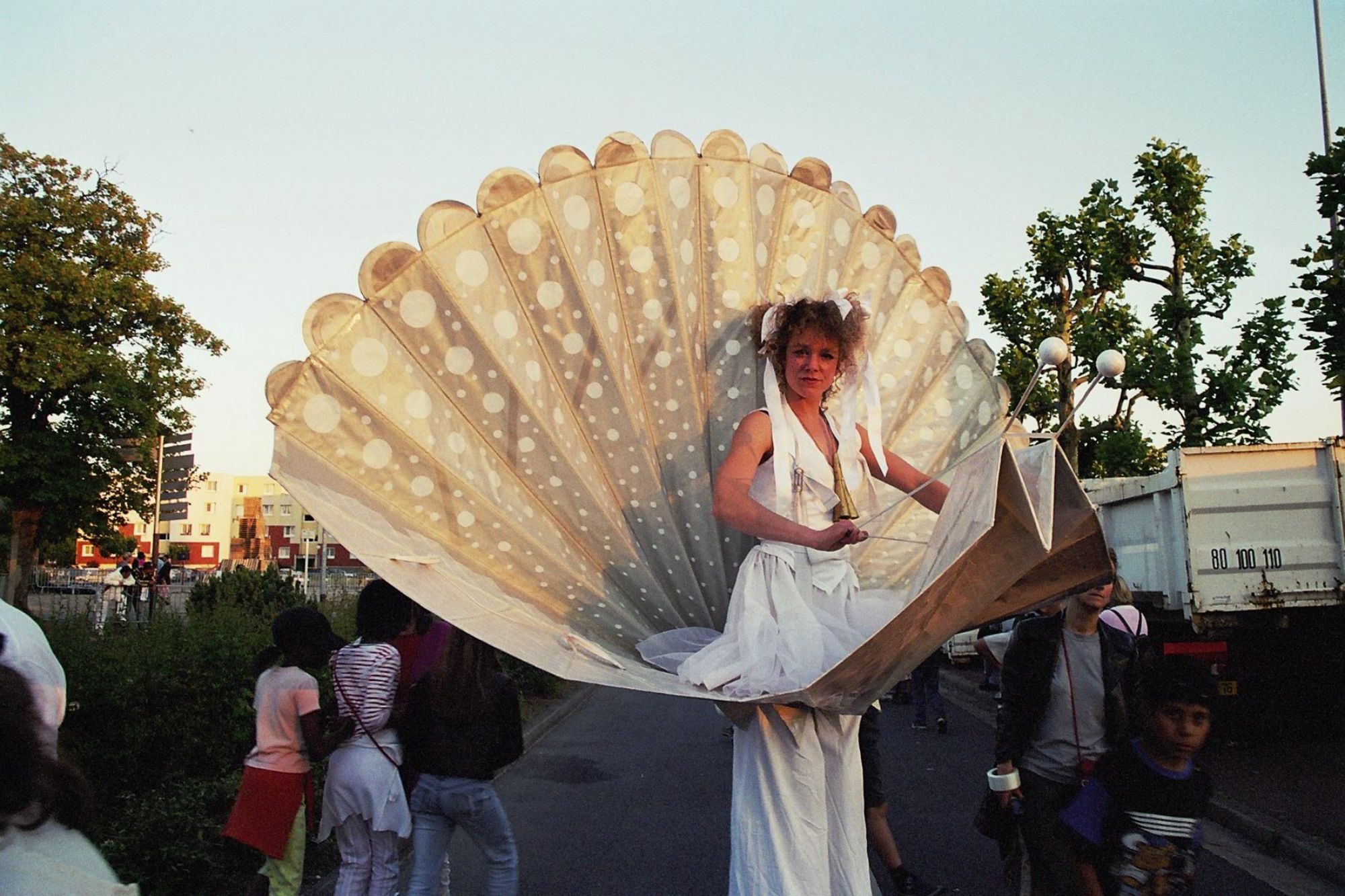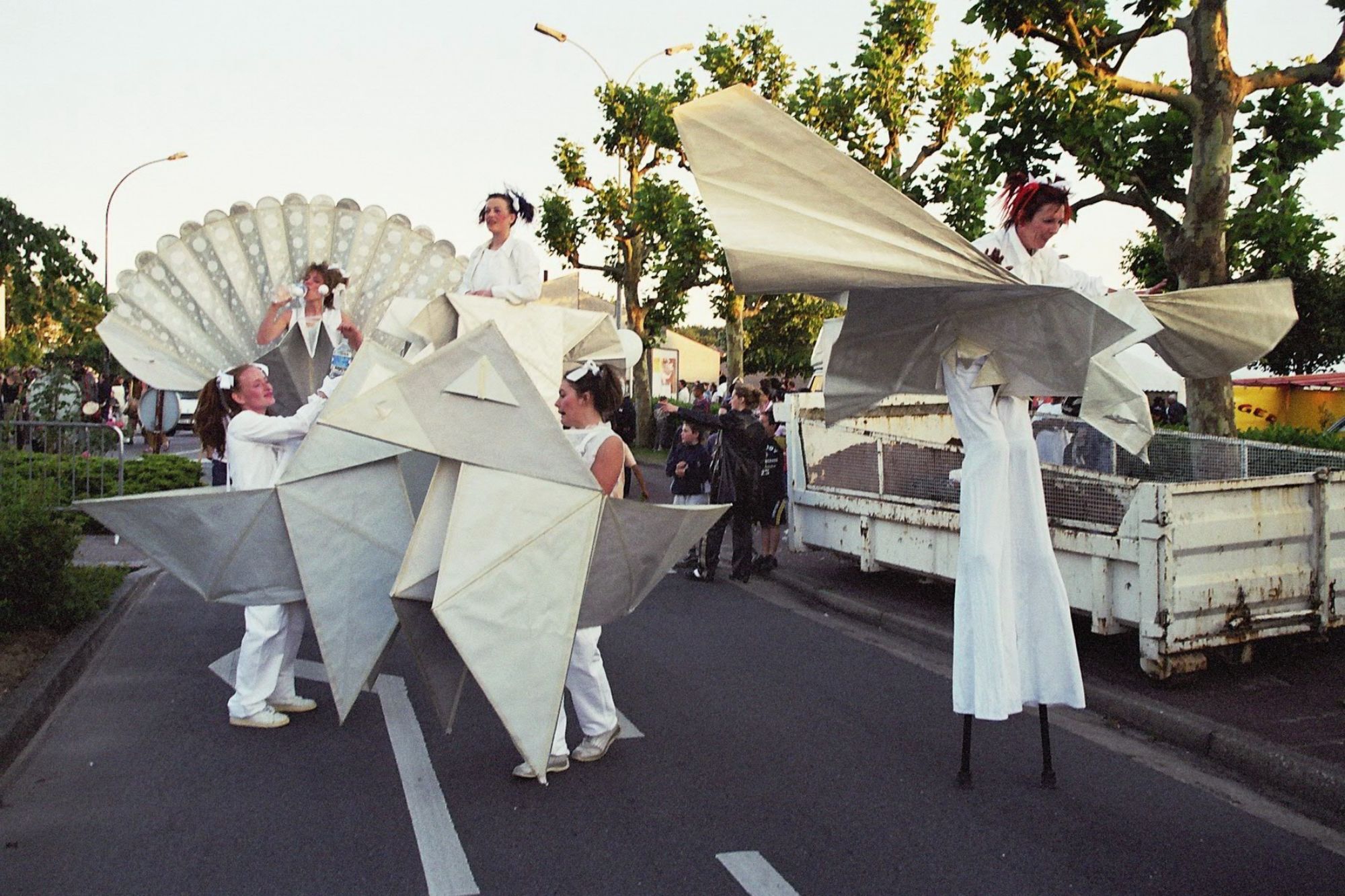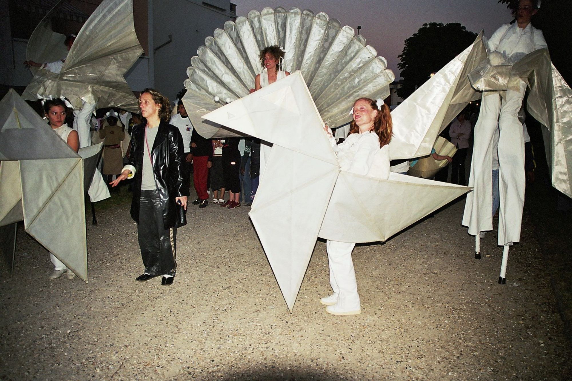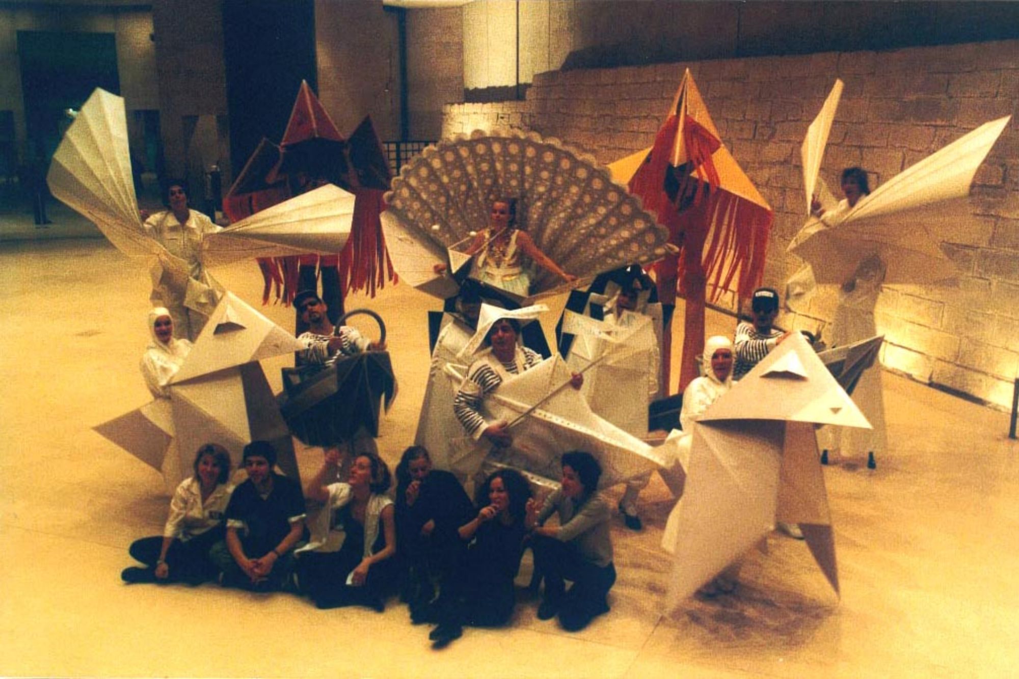 12 costumes d’origamis géants réalisés en papier pour la Cie Acidu en 2000,