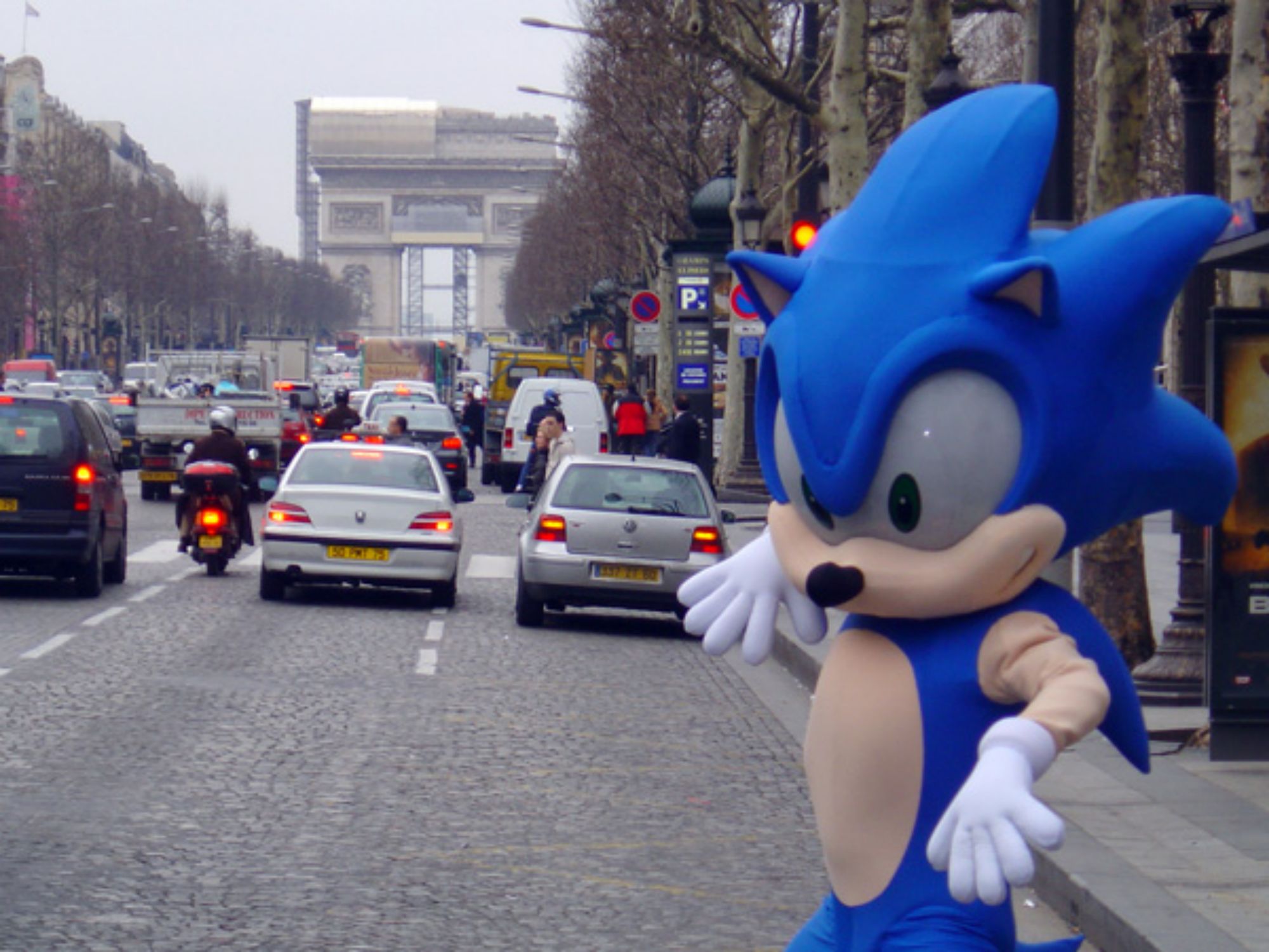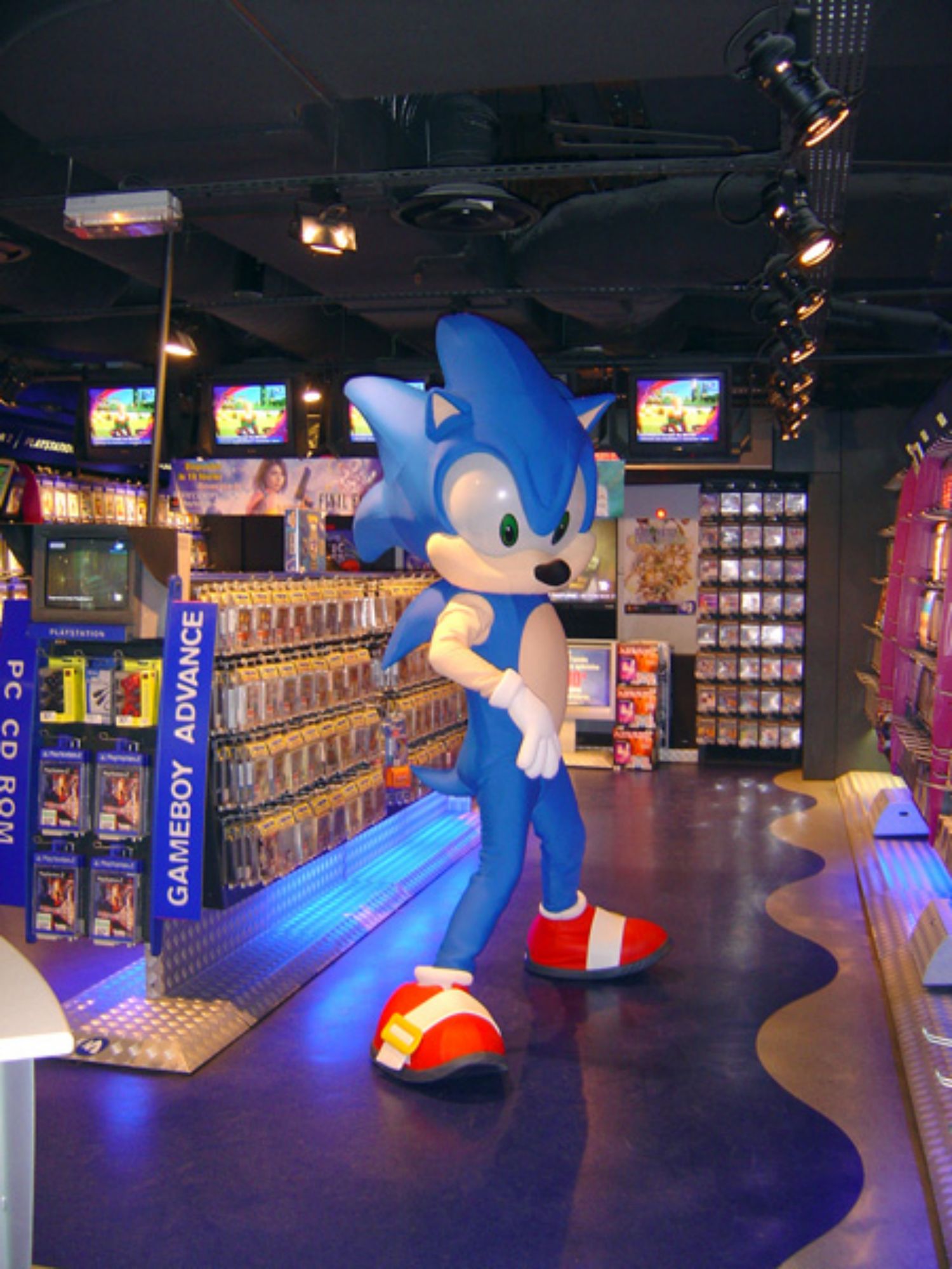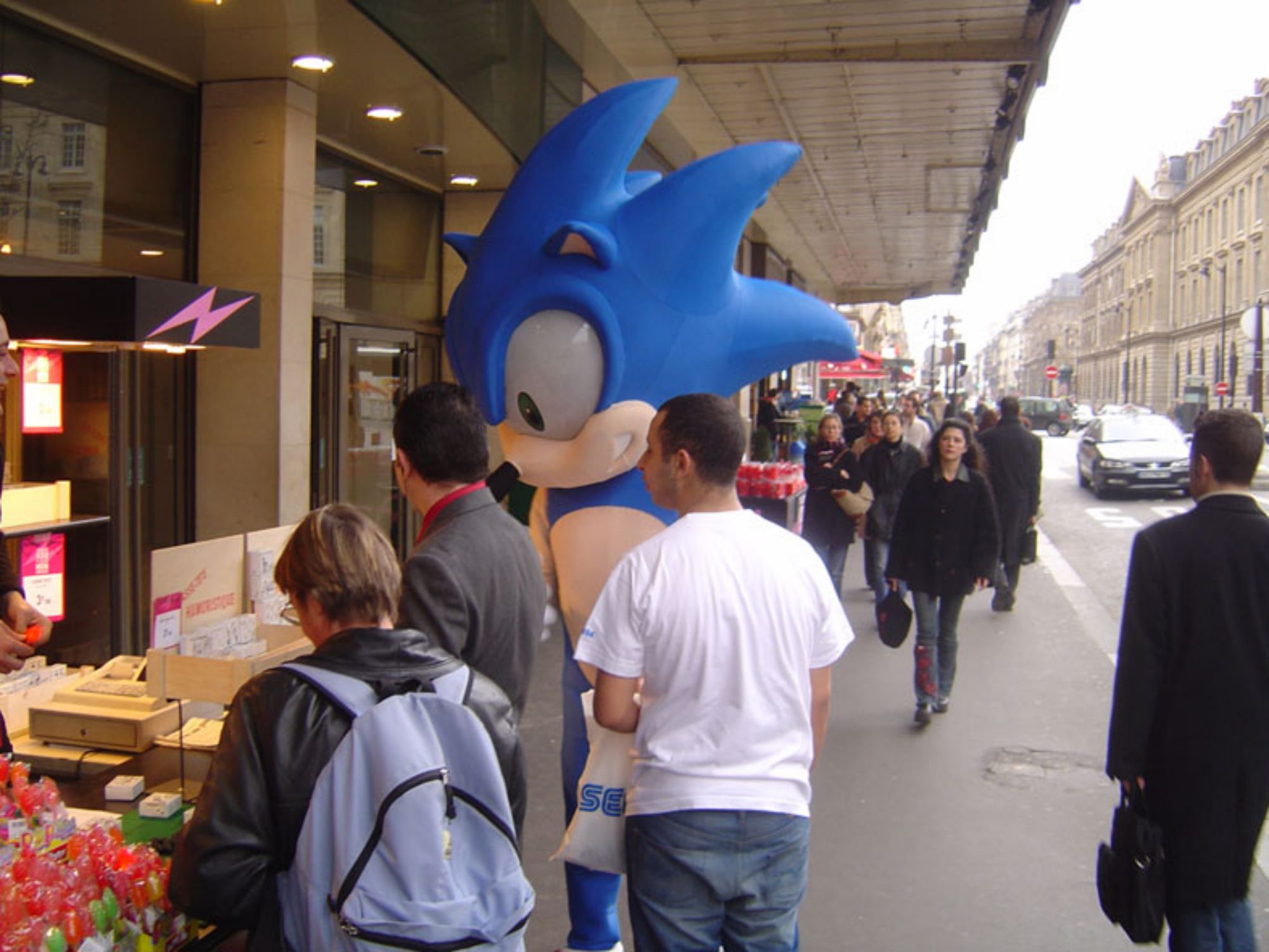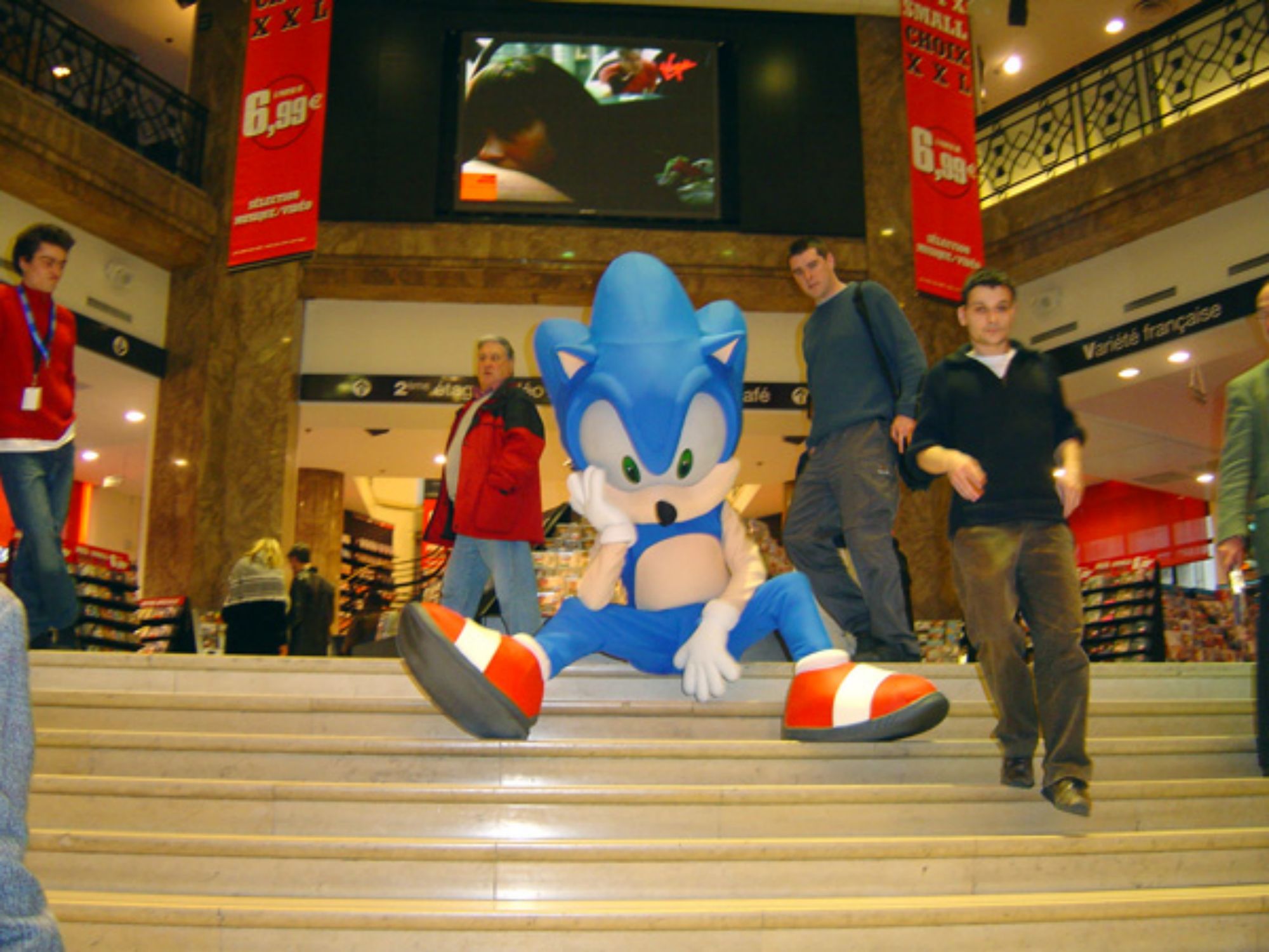 Reproduction de la mascotte de Sonic, hauteur 2m50 pour Sega France.