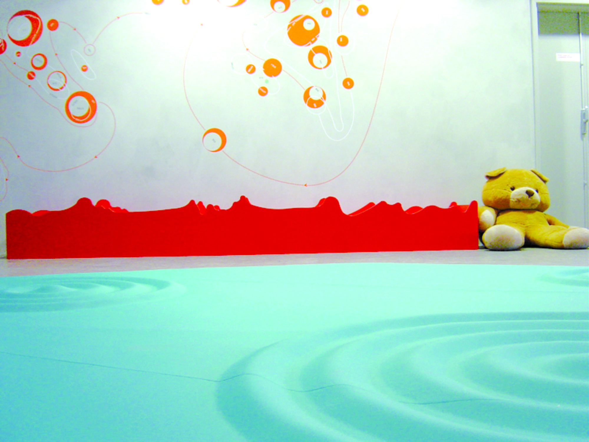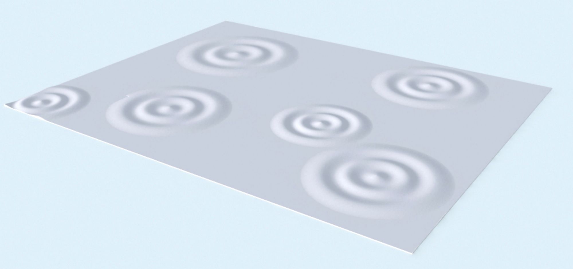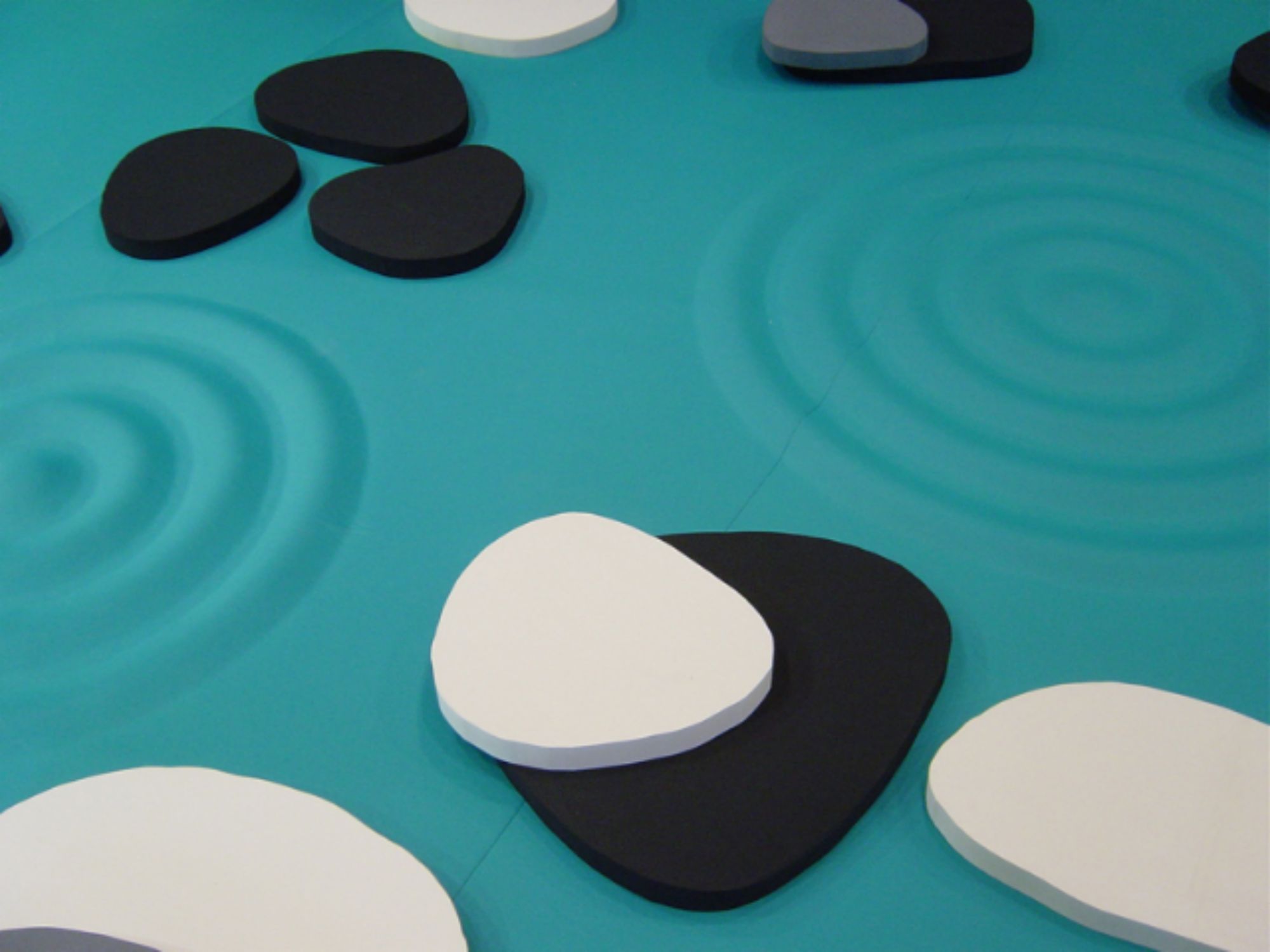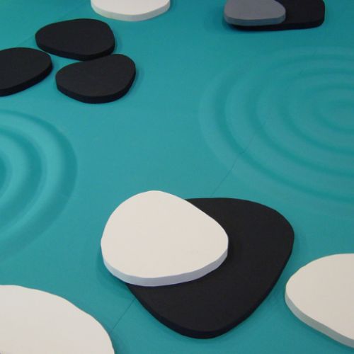 Réalisation d’un tapis (inifugé) de 5 m de diamètre présentant des volumes d’onde d’eau,
