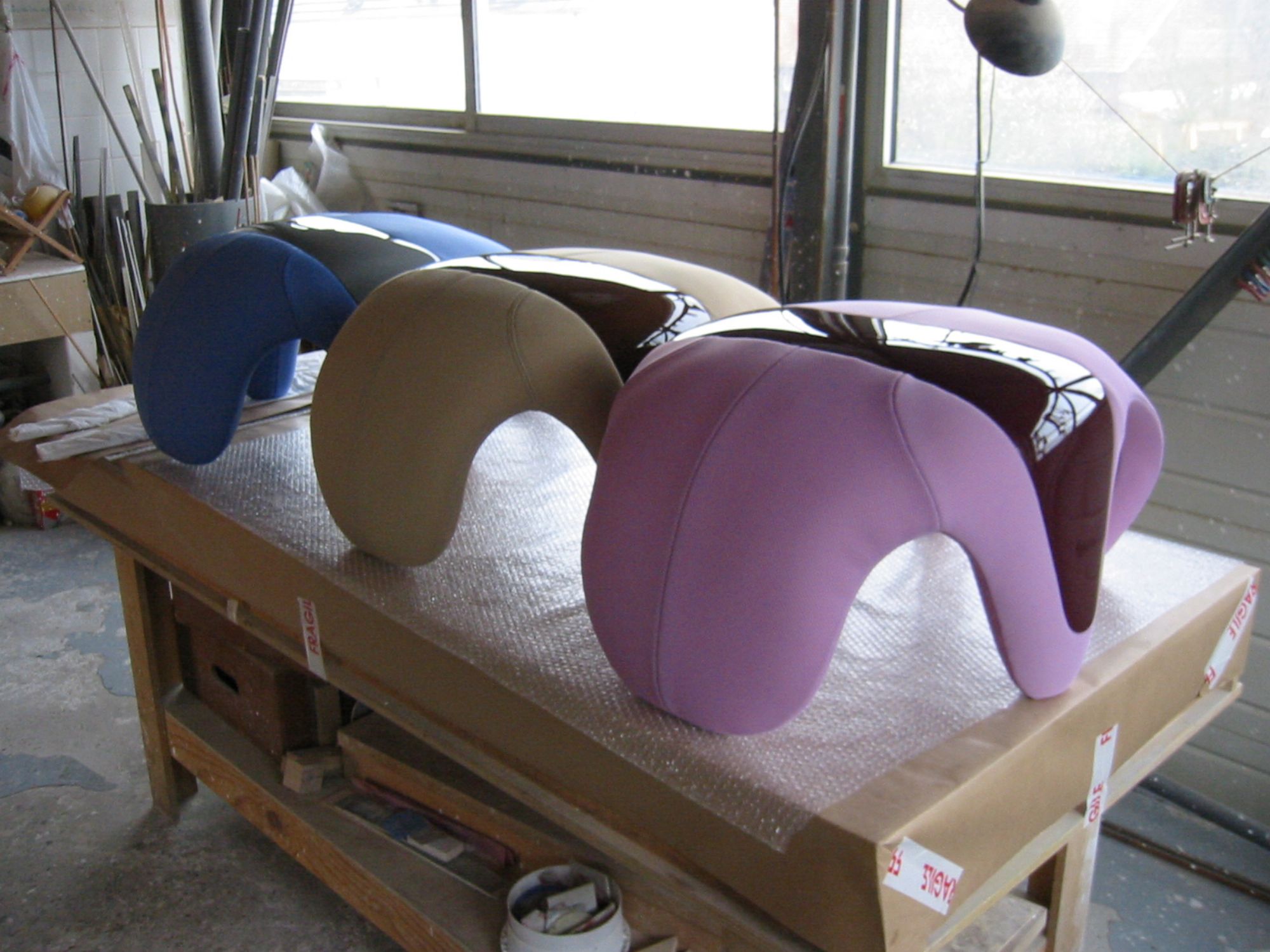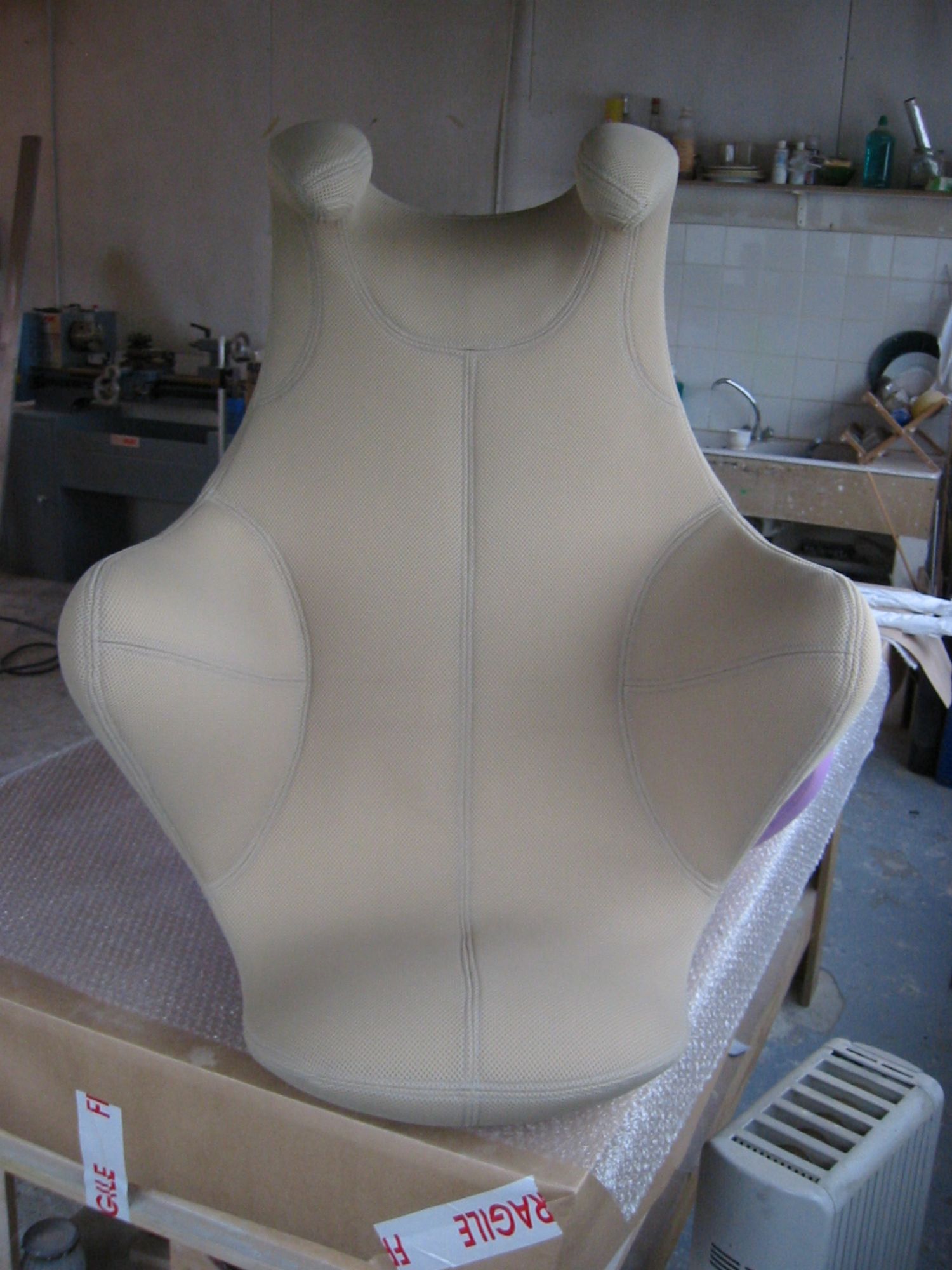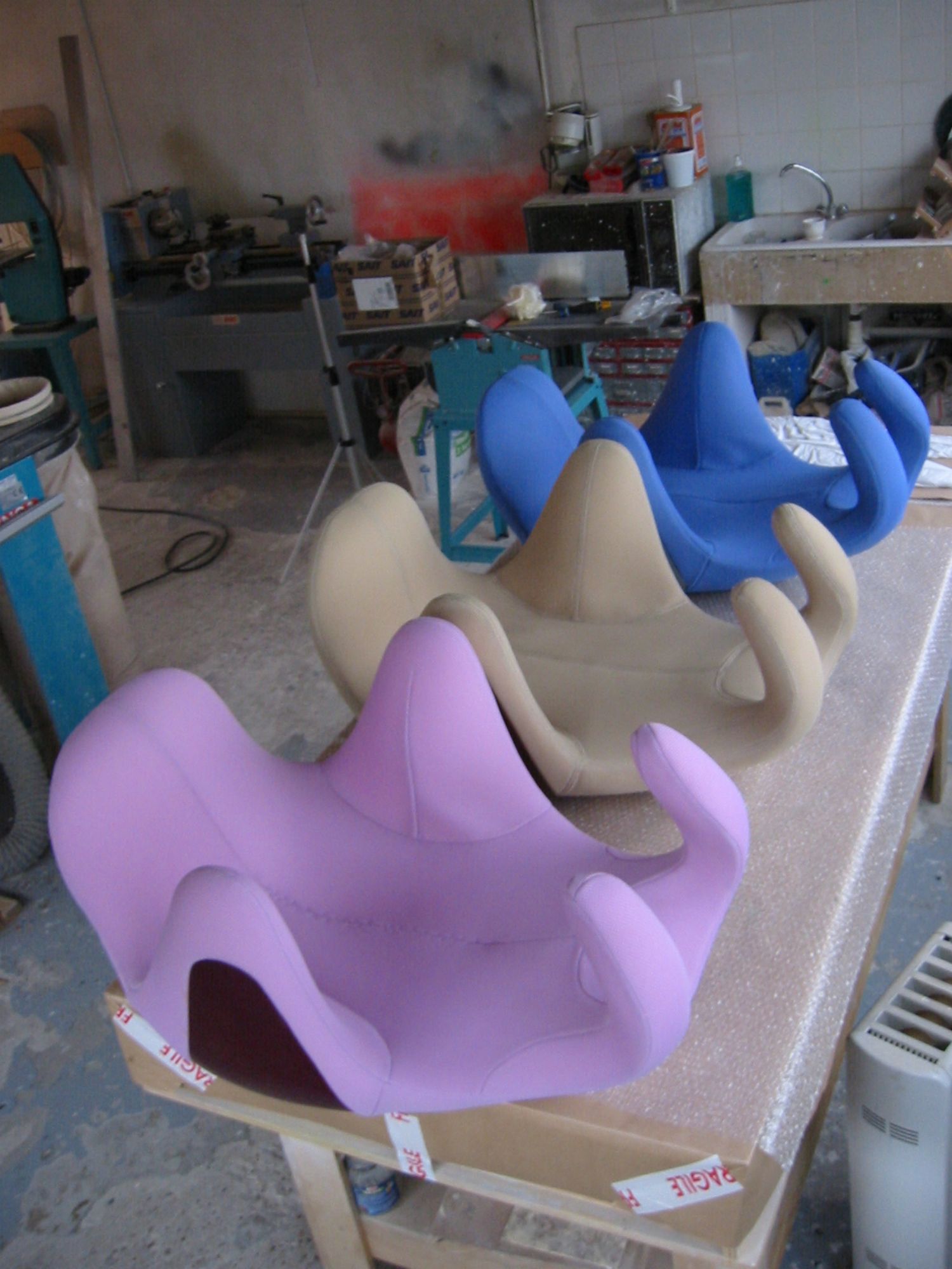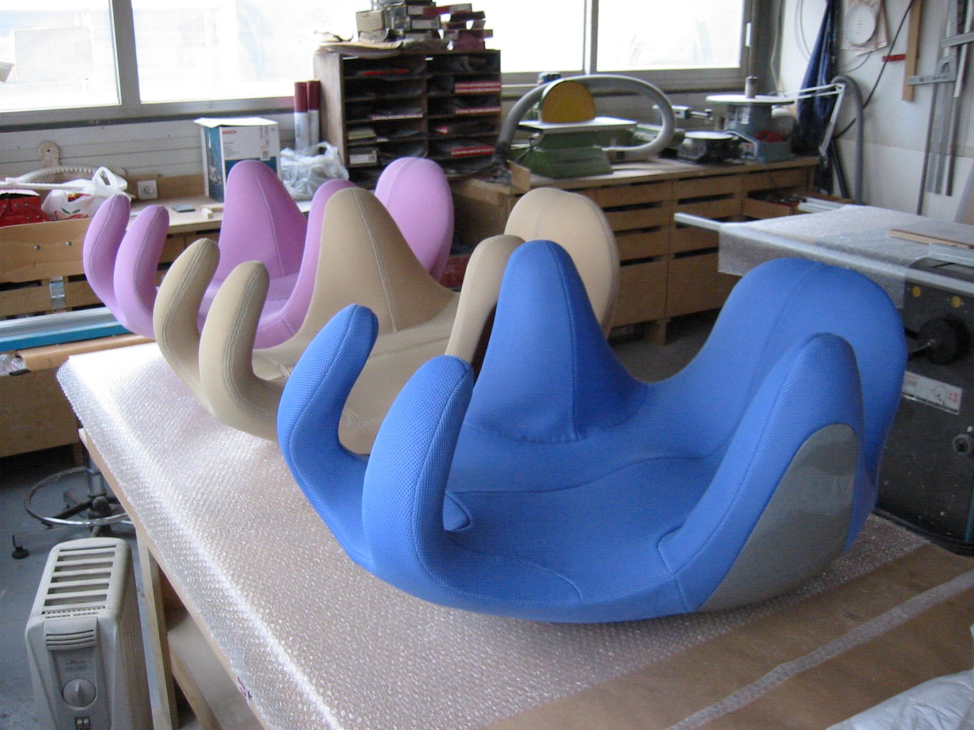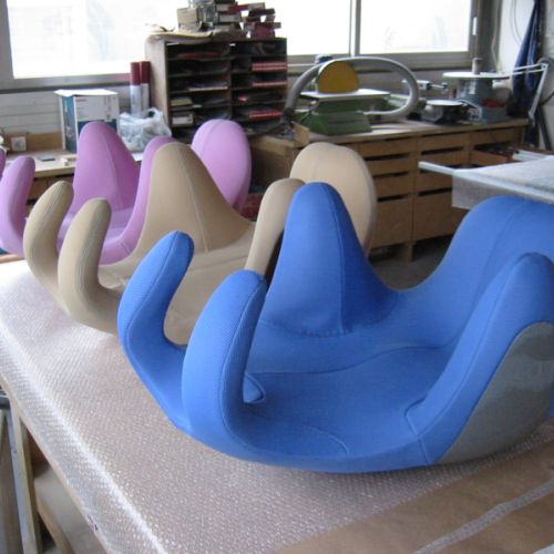 Réalisation de trois fauteuils se portant sur le dos pour et avec Réplicart,