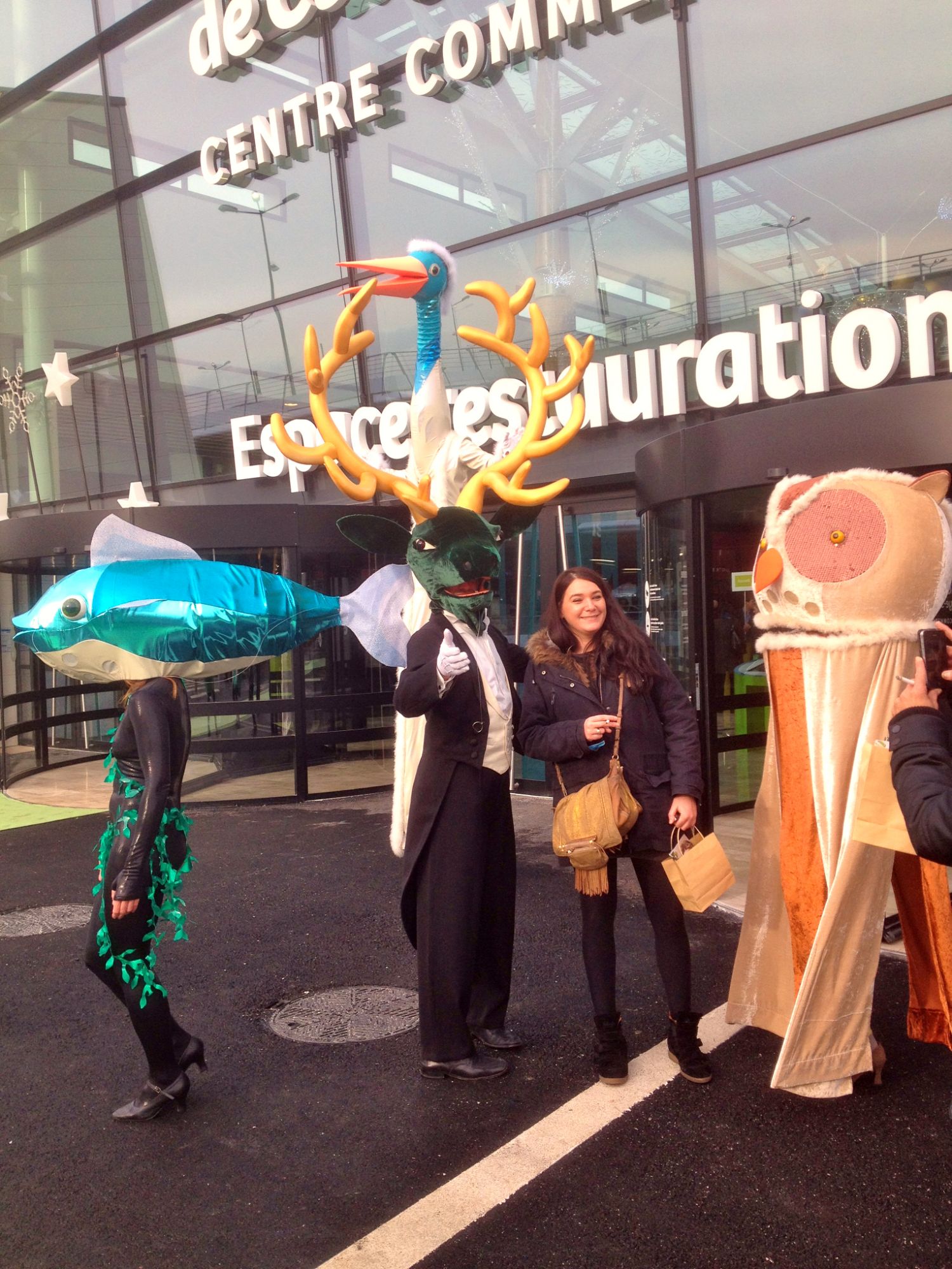 En Décembre 2012, Création de 5 costumes d’animaux pour l’inauguration d’un centre commercial à Claye Souilly,