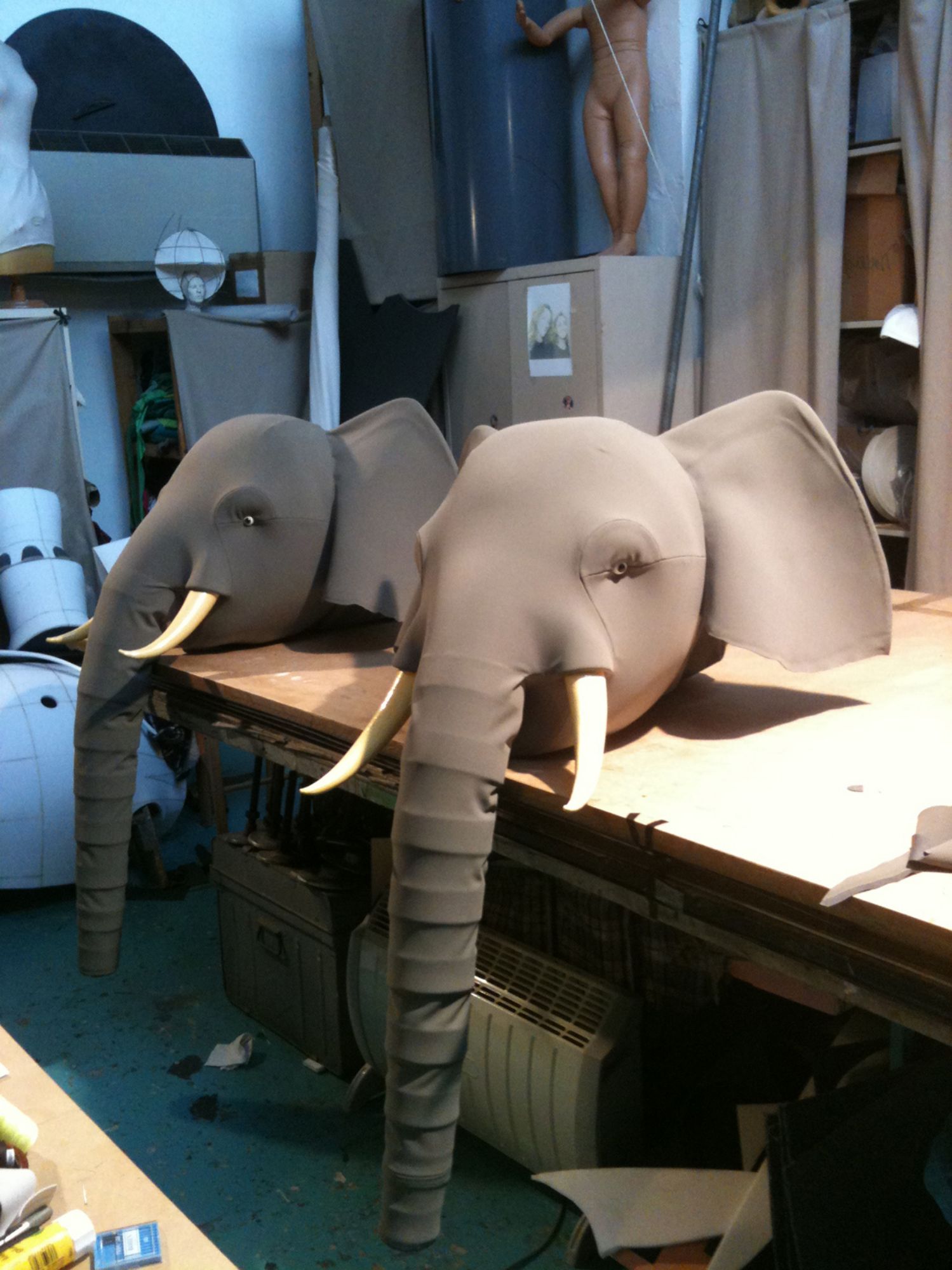 Création de deux marionnettes d’éléphanteaux pour les mangeurs de Lapins, avec la complicité de Julie Le Pallec.